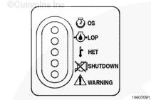 故障指示燈(警告、停機、超速、冷卻液溫度高、機油壓力低、冷卻液溫度高預警、機油壓力低預警)。
