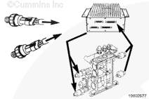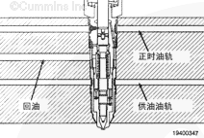 康明斯正時執行器和供油執行器調節后的燃油經缸蓋中的供油油道流至噴油器。