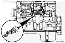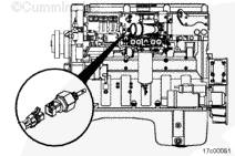 機油壓力/溫度傳感器向 ECM 發送用于發動機保護系統的信號。該傳感器位于發動機缸體上。