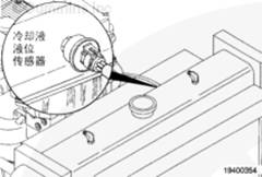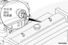 注: 這是一個可選裝的傳感器,不是所有發動機上都裝有此傳感器。如果沒有使用冷卻液液位傳感器,則安裝一個短接插頭。