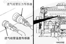 康明斯進氣歧管壓力傳感器和進氣歧管溫度傳感器位于進氣歧管內。進氣歧管壓力傳感器監控用于空燃比控制功能的正向歧管壓力。進氣歧管溫度傳感器測量渦輪增壓空氣溫度。進氣歧管空氣溫度傳感器也可用于發動機保護系統。