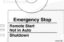 遠(yuǎn)程起動(dòng)或停機(jī)按鈕用于從遠(yuǎn)程位置的發(fā)電機(jī)組起動(dòng)和停機(jī)。當(dāng)發(fā)電機(jī)組工作時(shí),此按鈕顯示為停機(jī) (STOP);當(dāng)發(fā)電機(jī)組沒有工作時(shí),此按鈕顯示為起動(dòng) (START)。