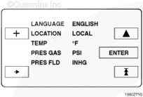 在任何時(shí)候,只要同時(shí)按下顯示窗口底部兩側(cè)的2個(gè)按鈕(一邊一個(gè)),就可以改變所顯示的語言和計(jì)量單位。會(huì)彈出語言/計(jì)量單位子菜單。要將所做更改保存在一個(gè)字段中,按下 ENTER(輸入)按鈕。