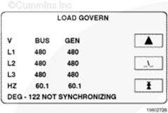 當(dāng)控制系統(tǒng)使發(fā)電機(jī)組達(dá)到額定轉(zhuǎn)速和電壓并且已經(jīng)感應(yīng)到母線電壓可用時(shí),啟用控制系統(tǒng)的同步功能。控制系統(tǒng)自動(dòng)調(diào)整發(fā)電機(jī)組轉(zhuǎn)速和電壓,以匹配母線頻率和電壓。