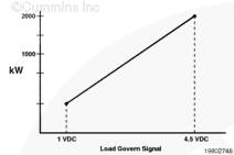 當(dāng)負(fù)載調(diào)速信號在 1 VDC 和 4.5 VDC 之間,控制系統(tǒng)將按照 kW 基準(zhǔn)和負(fù)載調(diào)速信號之間的線性關(guān)系確定的負(fù)載水平運(yùn)轉(zhuǎn)發(fā)電機(jī)組。