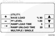 基本負(fù)載 (%) 控制發(fā)電機(jī)組與公用電網(wǎng)(干線)并聯(lián)運(yùn)轉(zhuǎn)時(shí)的最大 kW 負(fù)載水平。顯示的數(shù)值表明發(fā)電機(jī)穩(wěn)態(tài)負(fù)載在發(fā)電機(jī)組備載規(guī)格中所占的百分比。在超出發(fā)電機(jī)組規(guī)格的負(fù)載水平下長期運(yùn)行可能會(huì)造成發(fā)動(dòng)機(jī)異常磨損或過早損壞。