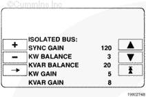 kW 平衡:此功能調(diào)整發(fā)電機(jī)組的 kW 負(fù)載分配功能。在調(diào)整此項(xiàng)數(shù)值前,應(yīng)進(jìn)行所有發(fā)電機(jī)組的標(biāo)定。如果系統(tǒng)上的總負(fù)載沒有按比例分配,可以利用 kW 平衡調(diào)整發(fā)電機(jī)組,達(dá)到更精確的負(fù)載分配。增大 kW 平衡的數(shù)值將使發(fā)電機(jī)組降低本臺(tái)發(fā)電機(jī)組占總 kW 負(fù)載的百分比。