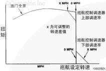 下部調(diào)速率 — 此特性允許實(shí)際車速在輕負(fù)荷條件下(比如,下坡)從巡航控制速度略微提高。當(dāng)此特性調(diào)整到其最大值 3 mph 時(shí),車輛的動(dòng)量得到保留,因而應(yīng)產(chǎn)生更好的燃油經(jīng)濟(jì)性。當(dāng)此特性調(diào)整到其最小值 0 mph 時(shí),車輛控制得到保持。