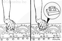 將活塞環壓縮器頂住缸套。將活塞穿過活塞環壓縮器推入缸套中。推動活塞,直到頂環完全進入缸套。