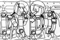 連桿的軸瓦定位舌側(左排和右排連桿)必須朝向左排凸輪軸,否則可能會出現曲軸或連桿損壞。
