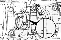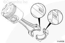 在連桿和與其相配的連桿蓋上蝕刻有唯一號碼(不是缸號)。當把連桿和連桿蓋裝到發動機上時,連桿和連桿蓋上的號碼必須相符,并安裝在發動機的同一側。