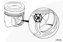 不得使用錘子安裝活塞銷。活塞會變形,從而卡在缸套中。