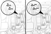 如果繼續使用舊連桿和連桿蓋,檢查以確保連桿和連桿蓋都壓印有缸號。如果安裝新連桿和連桿蓋,連桿和與其相配的連桿蓋一側應蝕刻有 R 或 L 字母以及一個唯一號碼(不是缸號)。使用錘子或鋼印在右排壓印字母 R,在左排壓印字母 L, 另外將目標缸號壓印在蝕刻編號的同一側。