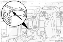 安裝連桿時,使連桿的倒角朝向曲軸連桿軸頸的圓角。如果連桿裝反,可能會損壞曲軸。