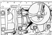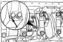 用橡膠錘敲擊連桿螺栓,使連桿蓋從環形定位銷上松開。拆下連桿螺栓。拆下連桿蓋。拆下連桿下軸承。在軸瓦定位舌平面上標上缸號和字母 L(下)。