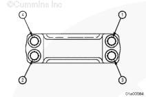 用清潔的 15W-40 機油潤滑連桿螺栓的螺紋和墊圈。安裝連桿蓋、螺栓和墊圈。先用手擰緊所有螺栓。