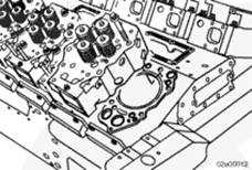 不要用砂布或砂紙去除氣缸套上的積碳。砂布或砂紙中的氧化鋁或硅顆粒會造成嚴重的發動機損壞。不要在活塞環行程區域使用研磨劑。否則會損壞缸套。