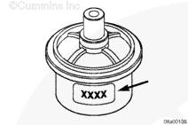 檢查溫度以查看節溫器設計為何時開啟。該節溫器設計的溫度為 77°C [170°F]。額定開啟溫度標記在節溫器的側面。