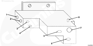 1左排歧管(零件號 3094772),2流至 EHAB 進口(左排供油)的燃油(抽吸未經過濾的燃油),3流至右排燃油歧管(右排供油)的燃油(抽吸未經過濾的燃油),4自油箱/粗濾器的供油(抽吸未經過濾的燃油),5自右排燃油歧管(右排回油)流入的燃油,6流至供油箱的燃油(回油),7自左排 EHAB/噴油泵溢流管和噴油器回油管(兩條管路)的回油。