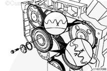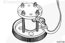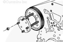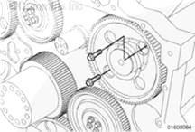 如果需要,旋轉曲軸以使凸輪軸齒輪上的孔與止推板上的螺栓孔相通安裝兩顆止推板安裝螺栓。擰緊螺栓。扭矩值: 45 n.m [33 ft-lb]