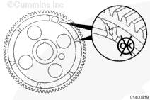 齒輪安裝到凸輪軸上以后,凸輪軸齒輪上的正時標記必須從齒輪前方可以看到。