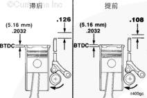 可用的凸輪軸鍵包括不同的規格(偏移量)。噴油器正時由下列因素控制:凸輪軸鍵的選擇,與凸輪軸齒輪旋轉方向相比,鍵偏移的方向,偏移量。在相同的方位安裝與拆下的鍵相同零件號的鍵。參考第 6 節中的步驟 006-025。