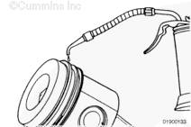 用發動機盤車工具(零件號 3824591)旋轉曲軸,直到活塞位積碳下方(可在活塞環行程區域的上方找到)。