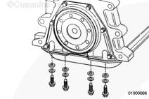 拆下起動馬達。參考第 13 節(jié)中的步驟 013-020。拆下變速箱和所有相關部件,如果配備。參考 OEM 維修手冊。拆卸飛輪/柔性連接盤總成。參考第 16 節(jié)中的步驟 016-005 或參考第 16 節(jié)中的步驟 016-004。拆下任何由 OEM 安裝在飛輪殼上的部件(消聲器、換檔機構、空氣濾清器,等)。參考 OEM 維修手冊。拆下飛輪殼。參考第 16 節(jié)中的步驟 016-006。
