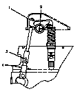 把調速器或執行器終端軸推向油門“運行”的位置至到燃油停止供油操縱桿(4)的平面接觸到同步銷(2). 這就是同步位置或“0”的位置參考點. 保持控制杠在這位置當進行調整單體泵齒條同步行程.