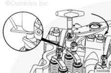 當標記對準康明斯ISX15 CM2250發動機齒輪室蓋上的指示箭頭并且兩個氣門關閉時,松開進氣和排氣門調節螺釘上的鎖緊螺母。將調節螺釘旋松一到兩圈。