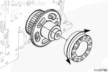 嘗試在四個位置(相距約 90 度),在曲軸齒輪和轉速信號輪之間插入 [0.25 mm] 0.010-英寸的塞尺來檢查安裝。