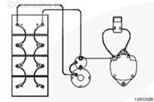 檢查導線有無故障。檢查所有的連接是否清潔并連接緊固,包括充電機和康明斯B3.3和QSB3.3發動機工作間壁之間的滑動接頭,以及蓄電池的接線。參考第 13 節中的步驟 013-009。