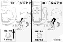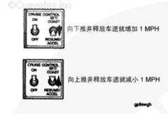 開關處于 RESUME/ACCEL(恢復/加速)位置時,也可增加車輛巡航速度。選擇開關保持在 RESUME/ACCEL(恢復/加速)位置時,車速將增加。而釋放此開關后,巡航速度就被重新設置。