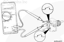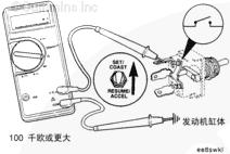 無論開關在什么位置,萬用表都必須顯示為開路特征(100 千歐或更大)。如果電路沒有開路,則開關故障。關于更換步驟,參考 OEM 故障判斷和排除手冊。