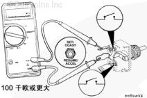 當開關釋放時,萬用表必須顯示開路特征(100 千歐或更大)。如果在任何一項測試中萬用表不能顯示正確值,說明開關已經故障。