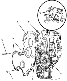 b.將新密封墊(2)安裝到前蓋(1)上。將三個(gè)定位工具(Y)(未顯示)嚙合到前蓋的孔中。