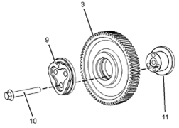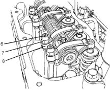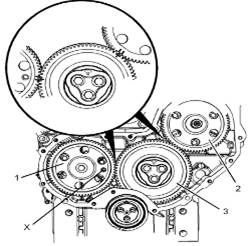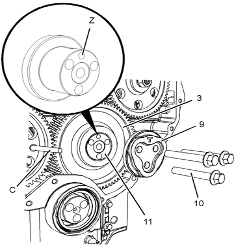 Perkins1106A/C發(fā)動(dòng)機(jī)惰齒輪-拆卸 拆卸步驟 Perkins1106A/C發(fā)動(dòng)機(jī)曲軸轉(zhuǎn)動(dòng)工具用于前皮帶輪。 該工具在電動(dòng)起動(dòng)馬達(dá)的孔上使用。 開始: a.拆卸Perkins1106A/C發(fā)動(dòng)機(jī)噴油泵齒輪。請(qǐng)參閱《Perkins1106A/C發(fā)動(dòng)機(jī)拆解和組裝》,“Perkins1106A/C發(fā)動(dòng)機(jī)燃油泵齒輪-拆卸”。 b.拆下Perkins1106A/C發(fā)動(dòng)機(jī)氣門機(jī)構(gòu)蓋。請(qǐng)參閱《Perkins1106A/C發(fā)動(dòng)機(jī)拆解和組裝》,“Perkins1106A/C發(fā)動(dòng)機(jī)氣門機(jī)構(gòu)蓋-拆卸和安裝”。 注:可以使用兩個(gè)工具(A)中的任意一個(gè)。請(qǐng)使用最適用的工具。 注:必須小心操作,確保在Perkins1106A/C發(fā)動(dòng)機(jī)燃油泵齒輪的拆卸過程 注意:保持所有零件清潔無雜質(zhì)。雜質(zhì)會(huì)造成快速磨損和縮短部件壽命。 1從Perkins1106A/C發(fā)動(dòng)機(jī)缸體上拆下螺塞(5)。從螺塞(5)拆下O形密封圈(4)。 2使用工具(A)轉(zhuǎn)動(dòng)Perkins1106A/C發(fā)動(dòng)機(jī)曲軸,使1號(hào)Perkins1106A/C發(fā)動(dòng)機(jī)活塞處于其壓縮沖程的上止點(diǎn)位置。請(qǐng)參閱《系統(tǒng)操作、測試和調(diào)整》,“查找1號(hào)Perkins1106A/C發(fā)動(dòng)機(jī)活塞上止點(diǎn)位置”。 3將工具(B)安裝到Perkins1106A/C發(fā)動(dòng)機(jī)缸體的孔(Y)中。使用工具(B),將Perkins1106A/C發(fā)動(dòng)機(jī)曲軸鎖定到位。 注:安裝工具(B)時(shí)不要使用過大的力量。在修理過程中不要使用工具(B)固定Perkins1106A/C發(fā)動(dòng)機(jī)曲軸。 4.確保已將工具(C)安裝在Perkins1106A/C發(fā)動(dòng)機(jī)凸輪軸齒輪的孔(X)中。使用工具(C)將Perkins1106A/C發(fā)動(dòng)機(jī)凸輪軸鎖定到位。 5.確保已標(biāo)記齒輪(1)、(2)和(3)以便顯示對(duì)準(zhǔn)位置。 6松開所有搖臂(8)上的螺母(7)。擰松所有搖臂(8)上的調(diào)節(jié)器(6),直到所有氣門完全閉合。 注:如果不能保證完全擰松所有調(diào)節(jié)器,可能會(huì)導(dǎo)致氣門與Perkins1106A/C發(fā)動(dòng)機(jī)活塞接觸。 7.標(biāo)記板(9)以顯示朝向。 注:識(shí)別標(biāo)記能確保將板安裝在原來的對(duì)準(zhǔn)位置。 8.拆下螺栓(10)。 9.拆下板(9)。 10.將Perkins1106A/C發(fā)動(dòng)機(jī)惰齒輪組件(3)和輪轂(11)從前Perkins1106A/C發(fā)動(dòng)機(jī)機(jī)殼體的凹槽上卸下。 注:在拆卸過程中必須傾斜Perkins1106A/C發(fā)動(dòng)機(jī)惰齒輪。 11.將輪轂(11)從Perkins1106A/C發(fā)動(dòng)機(jī)惰齒輪(3)上卸下。 Perkins1106A/C發(fā)動(dòng)機(jī)惰齒輪-安裝 安裝步驟 Perkins1106A/C發(fā)動(dòng)機(jī)曲軸轉(zhuǎn)動(dòng)工具用于前皮帶輪。 該工具在電動(dòng)起動(dòng)馬達(dá)的孔上使用。 1如有必要,使用工具(A)確保1號(hào)Perkins1106A/C發(fā)動(dòng)機(jī)活塞處于壓縮行程上止點(diǎn)。有關(guān)正確的步驟,請(qǐng)參閱《系統(tǒng)操作、測試和調(diào)整》,“查找1號(hào)Perkins1106A/C發(fā)動(dòng)機(jī)活塞上止點(diǎn)位置”。 2確保已將工具(B)安裝在Perkins1106A/C發(fā)動(dòng)機(jī)缸體的孔(Y)中。使用工具(B),將Perkins1106A/C發(fā)動(dòng)機(jī)曲軸鎖定到位。 3.確保已將工具(C)安裝在Perkins1106A/C發(fā)動(dòng)機(jī)凸輪軸齒輪(1)的孔(X)中。 4清潔Perkins1106A/C發(fā)動(dòng)機(jī)惰齒輪(3),檢查Perkins1106A/C發(fā)動(dòng)機(jī)惰齒輪有無磨損或損壞。有關(guān)更多資料,請(qǐng)參閱《技術(shù)規(guī)格》,“齒輪總成(前)”。如有必要,更換Perkins1106A/C發(fā)動(dòng)機(jī)惰齒輪。 5清潔輪轂(11),檢查輪轂有無磨損或損壞。有關(guān)更多資料,請(qǐng)參閱《技術(shù)規(guī)格》,“齒輪總成(前)”。如有必要,更換輪轂。 6使用清潔的發(fā)動(dòng)機(jī)Perkins1106A/C發(fā)動(dòng)機(jī)機(jī)油潤滑輪轂(11)。將輪轂(11)滑入Perkins1106A/C發(fā)動(dòng)機(jī)惰齒輪(3)。確保正時(shí)標(biāo)記朝向Perkins1106A/C發(fā)動(dòng)機(jī)惰齒輪前部。 7對(duì)準(zhǔn)Perkins1106A/C發(fā)動(dòng)機(jī)惰齒輪(3)與Perkins1106A/C發(fā)動(dòng)機(jī)凸輪軸齒輪上的的正時(shí)標(biāo)記。請(qǐng)參閱插圖135。將Perkins1106A/C發(fā)動(dòng)機(jī)惰齒輪組件(3)和輪轂(11)安裝到正時(shí)箱的凹槽中。確保油孔(Z)靠近輪轂頂部。 注:在安裝過程中必須傾斜Perkins1106A/C發(fā)動(dòng)機(jī)惰齒輪。確保對(duì)準(zhǔn)輪轂中的孔與Perkins1106A/C發(fā)動(dòng)機(jī)缸體中的孔。 8.清潔板(9),檢查板有無磨損或損壞。如有必要,更換板。 9.使用清潔的發(fā)動(dòng)機(jī)機(jī)油潤滑板(9)。對(duì)準(zhǔn)板(9)和輪轂(11)內(nèi)的孔。將板安裝在原來的朝向。 10.安裝螺栓(10)。 11.拆下工具(B)和工具(C)。 注:拆下工具(B)和工具(C)之前,確保正時(shí)標(biāo)記已對(duì)齊。 12.擰緊螺栓(10)至扭矩為44N·m(32lbft)。 13.使用工具(D)測量Perkins1106A/C發(fā)動(dòng)機(jī)凸輪軸齒輪的端隙。有關(guān)更多資料,請(qǐng)參閱《技術(shù)規(guī)格》,“齒輪總成(前)”。 14.使用工具(D)測量Perkins1106A/C發(fā)動(dòng)機(jī)惰齒輪與Perkins1106A/C發(fā)動(dòng)機(jī)凸輪軸齒輪之間的齒隙。有關(guān)更多資料,請(qǐng)參閱《技術(shù)規(guī)格》,“齒輪總成(前)”。 15.使用工具(D)測量Perkins1106A/C發(fā)動(dòng)機(jī)惰齒輪與Perkins1106A/C發(fā)動(dòng)機(jī)曲軸齒輪之間的齒隙