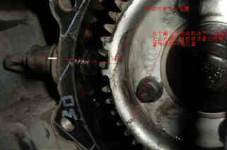 7.懷疑到曲軸正時齒輪移位,于是拆檢齒輪室,發(fā)現(xiàn)曲軸正時齒輪已經(jīng)崩齒且移位圖