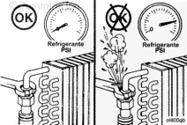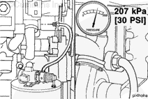 使用一臺能夠連續(xù)提供205 kPa [30 psi]壓力的壓力泵。將泵連接至發(fā)動(dòng)機(jī)機(jī)油濾清器座的前部。