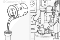 排放康明斯發(fā)動(dòng)機(jī)冷卻液。參考第 8 節(jié)中的步驟 008-018(冷卻系統(tǒng))。