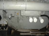 • 潤滑系統包括:管路系統、預熱、預供、自動控制裝置等。柴油發電機組的機油泵將潤滑油傳遞到各活動部件,起到潤滑和冷卻作用。其潤滑供油分成AB列,在機器兩側布置相同的冷油器、過濾器、管道。油從油泵出來后輸送至冷油器,然后至過濾器聯箱,油流經過3個全流量的缸式過濾器、其中兩個用于軸承供油,一個過濾器用于活塞冷卻。