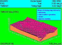 發動機的ECM內有多個三維圖譜. 如圖所示,當各個輸入信號的參數值確定后,在這種工況下的發動機的正時也就確定了.