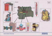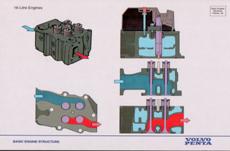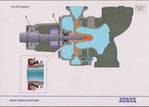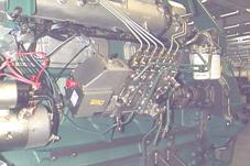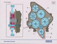 1. 能量轉換和發(fā)動機省油冷卻損失 排氣損失 摩擦損失 效率:柴油機效率約43--44%,汽油機約30%。早期柴油機效率只有2%--5%. 省油措施:提高冷卻水溫、利用排氣能量、盡量使燃燒充分、運行于部分負載(約70%左右)等。 發(fā)電用發(fā)動機的工況劃分 兩種工況極其區(qū)別 長行主電站功率 額定功率符合ISO連續(xù)運行的標準, 適合于在不同載荷下, 持續(xù)提供動力.具有10%的過載能力. 最大備用電站功率 功率符合ISO標準, 可在不同載荷下持續(xù)供電, 適合在電力設備良好的地區(qū)出現(xiàn)故障時使用.不允許有過載. 二. 發(fā)動機基本組成 往復式活塞式發(fā)動機由以下幾部分組成: 固定部件 機體、主軸承、缸套、缸蓋、飛輪殼、油地殼、機腳 運動部件 活塞、連桿、曲軸、飛輪、傳動齒輪 換氣系統(tǒng) 凸輪軸、頂柱、挺桿、搖臂、閥橋、進排氣閥、空氣濾器 燃油系統(tǒng) 噴油泵、噴油器、輸油泵、高壓油管、調速器、燃油濾器 潤滑系統(tǒng) 潤滑油泵、安全閥、定壓閥、減壓閥、活塞冷卻油閥、量油尺、濾器 冷卻系統(tǒng) 散熱器、中冷器、膨脹水箱、風扇、節(jié)溫器 電氣/電子控制和報警檢測系統(tǒng) 起動馬達、充電發(fā)電機、停車電磁閥、電子模塊、接線/控制箱、儀表或顯示器 固定部件– 機體 固定部件– 缸蓋 固定部件– 機體與缸套 運動部件– 活塞 運動部件– 連桿 運動部件– 曲軸 進排氣系統(tǒng)– 進排氣機構 進排氣系統(tǒng)– 傳動齒輪 1. 曲軸齒輪 2. 左惰轉齒輪 3. 噴油泵齒輪 4. 凸輪軸齒輪 5. 上惰轉齒輪 6. 淡水泵齒輪 7. 右惰轉齒輪 8. 機油泵惰齒輪 9. 機油泵齒輪 10.輔助動力輸出 進排氣系統(tǒng)– 渦輪增壓器 冷卻系統(tǒng)– 節(jié)溫器 冷卻系統(tǒng)– 水泵 潤滑系統(tǒng)– 各閥件 1. 安全閥 2. 滑油冷卻器旁通閥 3. 滑油濾器旁通閥 4. 定壓閥 5. 活塞冷卻閥 潤滑系統(tǒng)– 各閥件 1. 安全閥 2. 滑油冷卻器旁通閥 3. 滑油濾器旁通閥 4. 定壓閥 5. 活塞冷卻閥 潤滑系統(tǒng)– 流向 潤滑系統(tǒng)– 油泵 燃油系統(tǒng)– 組成 燃油系統(tǒng)– 流向 電子執(zhí)行器 - ACB275 系列 沃爾沃柴油發(fā)動機調速板ESD5500 電子執(zhí)行器 - ACB225 RSV 調速器 (全程式) 1 調速器殼體 2 起動彈簧 3 控制桿/燃油齒條 4 油門桿 5 調速器蓋 6 怠速限位螺釘 7 調速彈簧 8 阻尼螺釘 9 調速器飛塊 10 油量限位螺釘 11 出油閥 12 柱塞偶件 13 油量調節(jié)套 14 滾輪頂柱 15 凸輪軸 RQ 調速器 (單極式) 1 控制齒桿 2 連接叉 3 間隙補償彈簧 4 調節(jié)螺母 5 調速彈簧 6 飛塊 7 直角杠桿 8 滑動螺栓 9 滑塊 10 導銷 1 調節(jié)螺母 2 外彈簧座 3 高速彈簧 4 怠速彈簧 5 飛塊 6 內彈簧座 調速器的功用 根據(jù)負荷變化,迅速、沃爾沃柴油機,沃爾沃柴油發(fā)動機,沃爾沃柴油發(fā)動機維修保養(yǎng),沃爾沃維修保養(yǎng),沃爾沃柴油發(fā)動機零配件,沃爾沃柴油發(fā)動機維修保養(yǎng)報價,自動地調整供油量,使輸出功率與負荷 保持平衡,保持穩(wěn)定的轉速。限制最高轉速,防止飛車事故。保證低速空轉的穩(wěn)定性。 調速原理 軸 飛塊 傳動套筒 連桿機構 調速彈簧, , 調速螺釘 感應元件:3,6 執(zhí)行元件:4,5 操縱機構:7 調速原理:離心力和彈簧力的平衡 調速器的分類 (一) 4. 全電子調速器:信號感測部分和執(zhí)行機構均為電氣式。工作能力較小,適應于小型柴油機。 5 電液調速器:信號感測為電子式,執(zhí)行機構為液壓伺服器。采用不同工作能力的伺服器,可滿足不同功率柴 油機的要求。 Volvo Penta 常用的調速器為機械調速器和全電子調速器 調速器的分類 (二) 一個基本的GAC調速系統(tǒng)由三部分組成 電子執(zhí)行器:與發(fā)動機的噴油泵連接 電子轉速控制單元:將發(fā)動機即時轉速與期望轉速相比較, 向電子執(zhí)行器發(fā)出更正信號. 磁性轉速傳感器:通過向轉速控制單元發(fā)出頻率信號來檢測發(fā)動機轉速 電氣系統(tǒng)-- 電氣線路圖 保持機房整潔